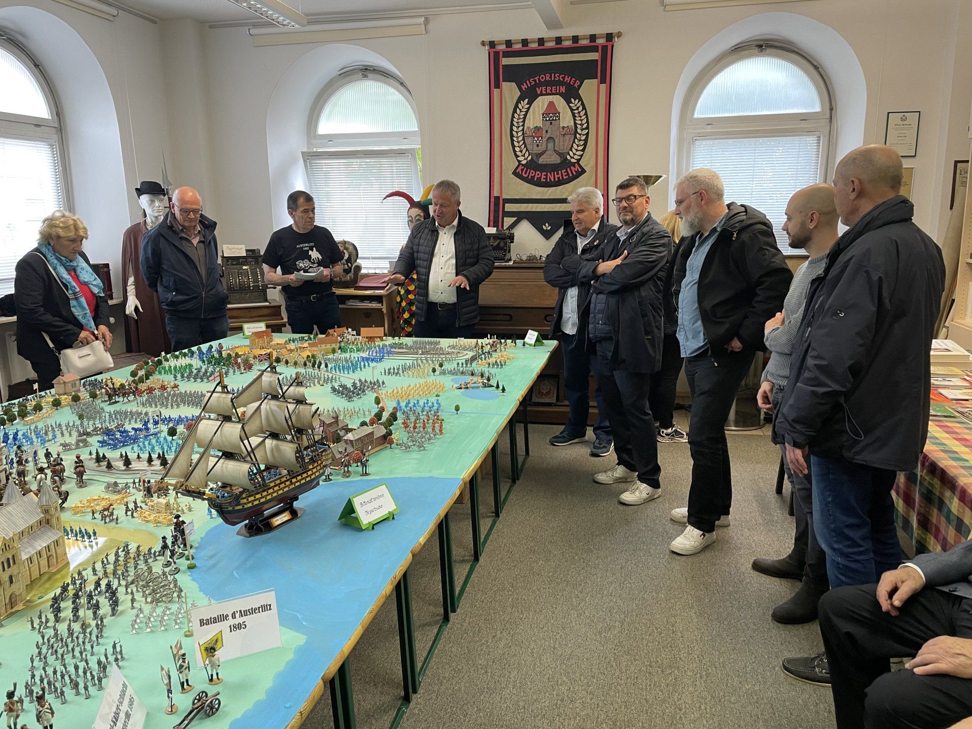 Nach dem vorletzten Musikstück lenkte Herr Krug das Augenmerk auf das von Uwe Ridinger erstellte Diorama der „Drei Kaiserschlacht von Austerlitz“. In akribischer Arbeit wurden ca. 3500 Figuren von Herrn Ridinger in Szene gesetzt.
