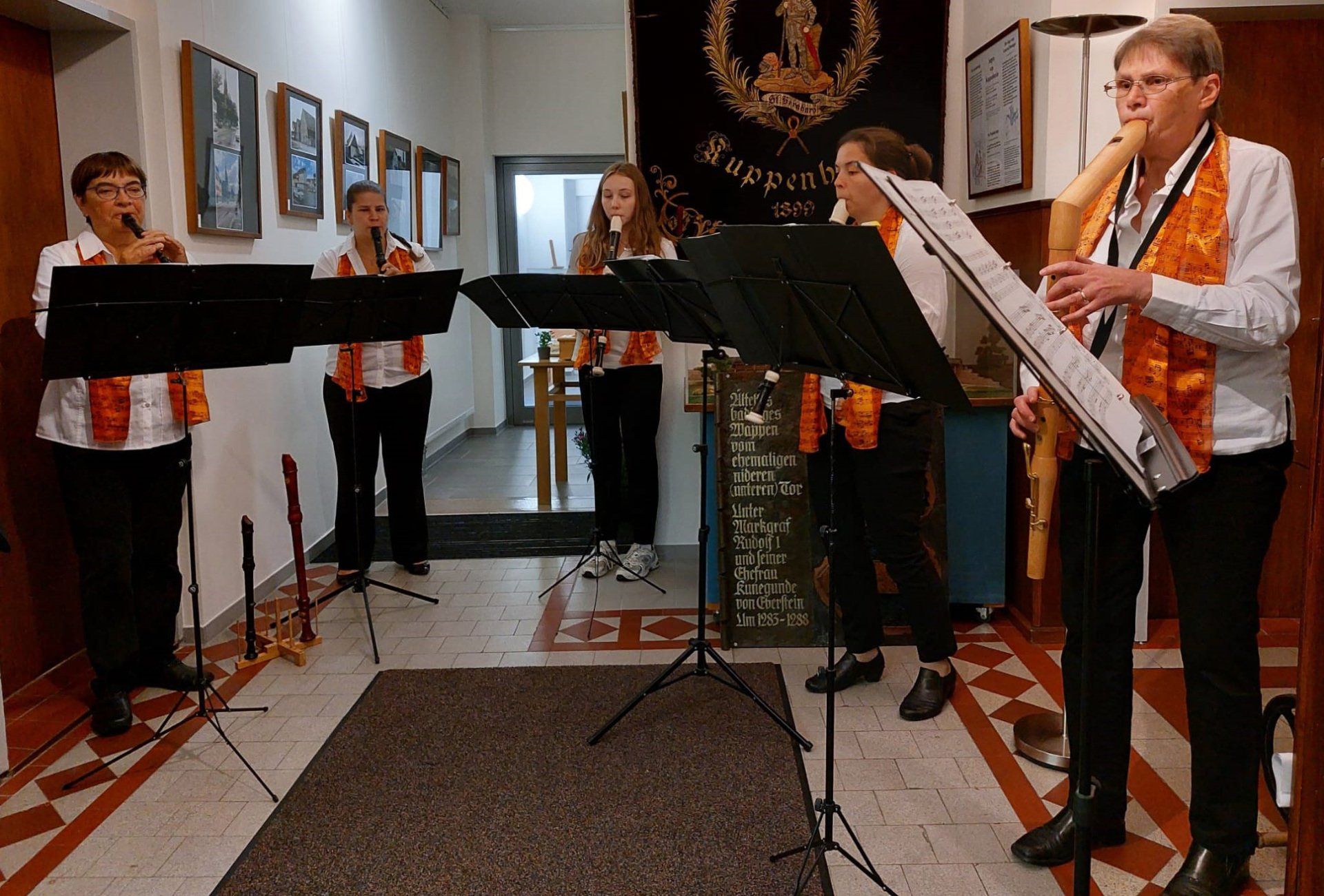 Pünktlich um 19:00 Uhr eröffnete das Ensemble Flauto dolce die Vernissage des Historischen Vereins. Der 1. Vorsitzende des Vereins, Rupert Krug, begrüßte die zahlreich erschienen Gäste und das Ensemble Flauto dolce unter der Leitung von Gisela Krug.